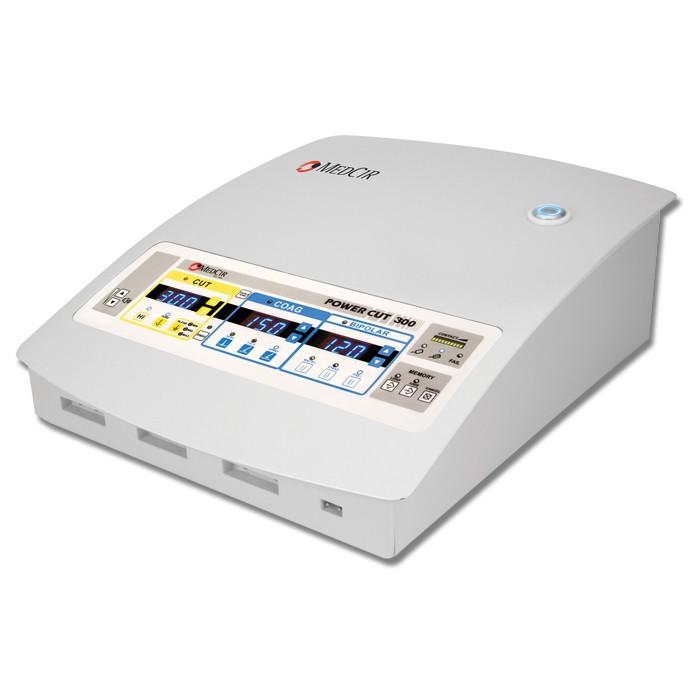 Bisturi eletrônico PowerCut 300W com design inovador e plataforma de alta performance para procedimentos eletrocirúrgicos de complexidade. Equipamento versátil para centros cirúrgicos, com recursos avançados para tecidos delicados, neurocirurgia e RTU. Interface intuitiva com LED, modos de corte e coagulação precisos, e opções de acessórios personalizáveis. Inclui carro de transporte para mobilidade em ambientes hospitalares.