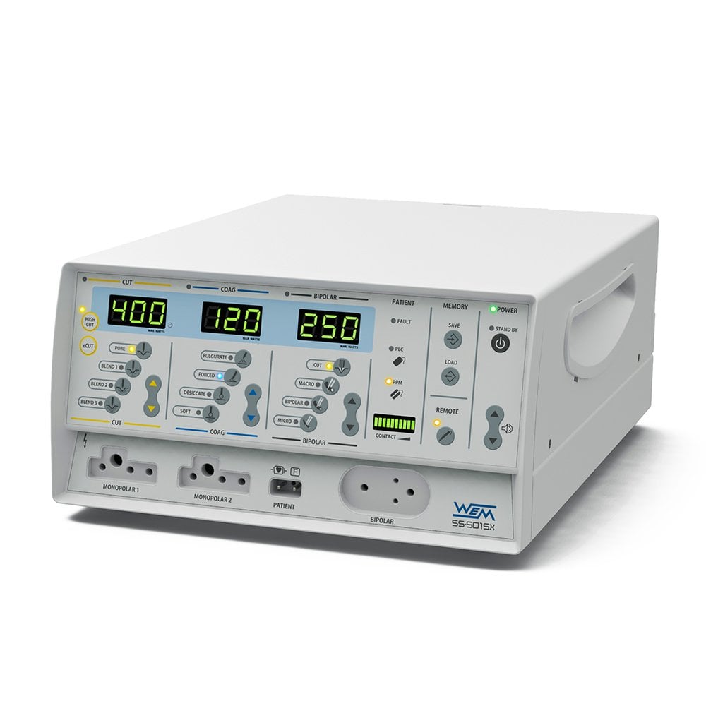 20 modos: 12 funções de corte (puro, blend, high cut, eCUT) + coagulação (contact, desiccate, spray) + bipolar (1W) e microbipolar (0,5W)