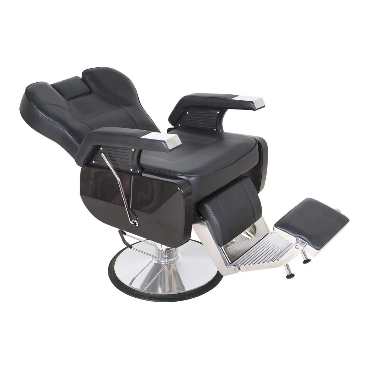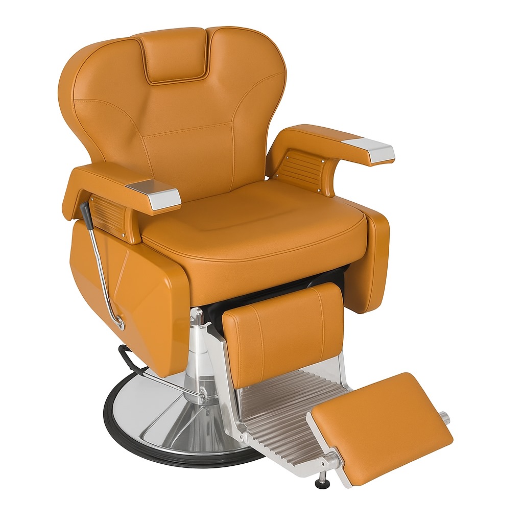 Cadeira de barbeiro Colorado vintage inspirada nos clássicos americanos, combinando estilo retrô e funcionalidade avançada. Com pistão hidráulico reforçado de 40cm para elevação suave e estável, encosto reclinável até 47° e apoio de pernas reclinável/dobrável. Revestimento em courvin premium e espuma de densidade 33 garantem conforto e durabilidade para até 150kg. Base e braços em aço cromado com detalhes estofados. Ideal para barbearias premium e residências que valorizam elegância e desempenho.