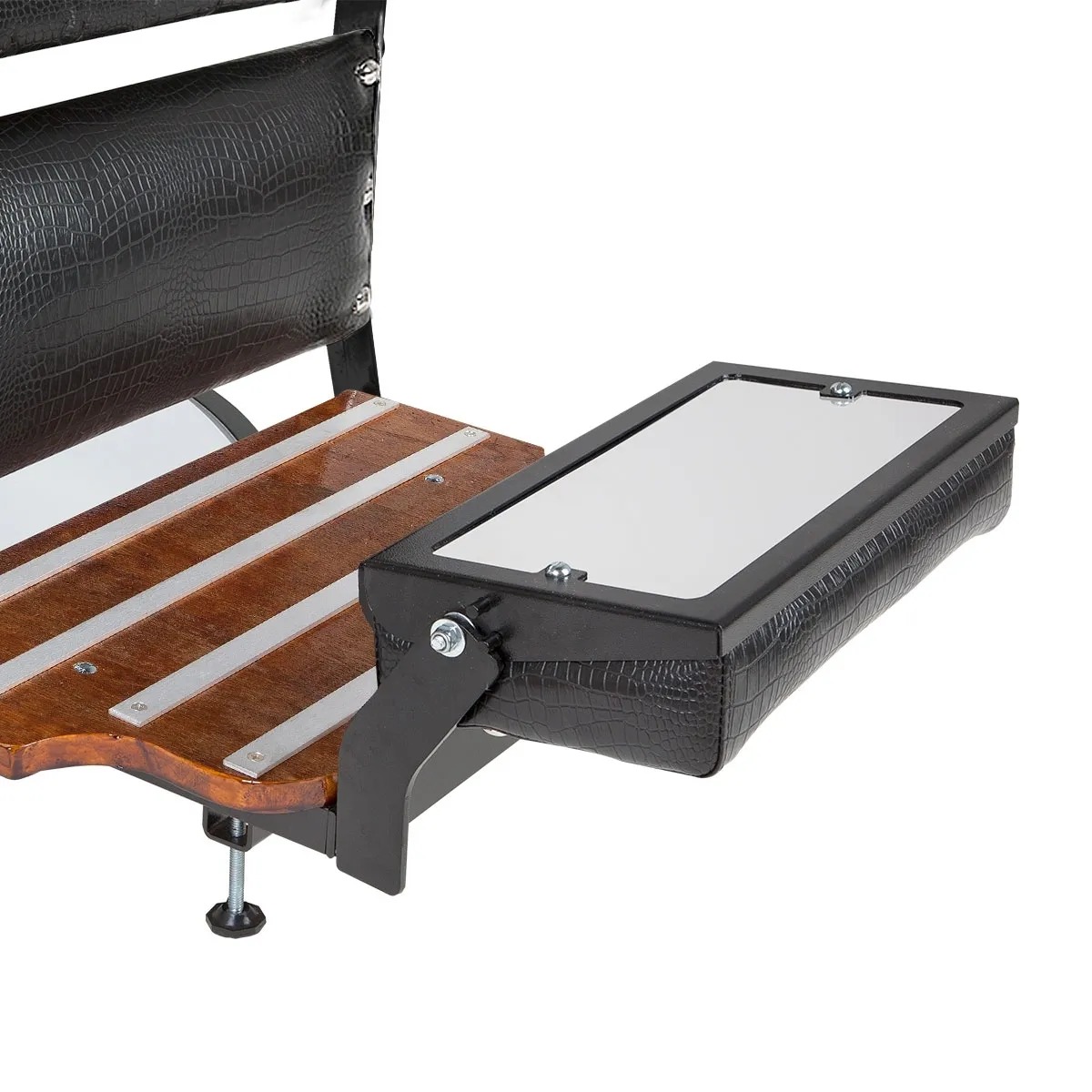 Cadeira Barbeiro Reclinável Preta com Base Cromada e Detalhes em Botonê