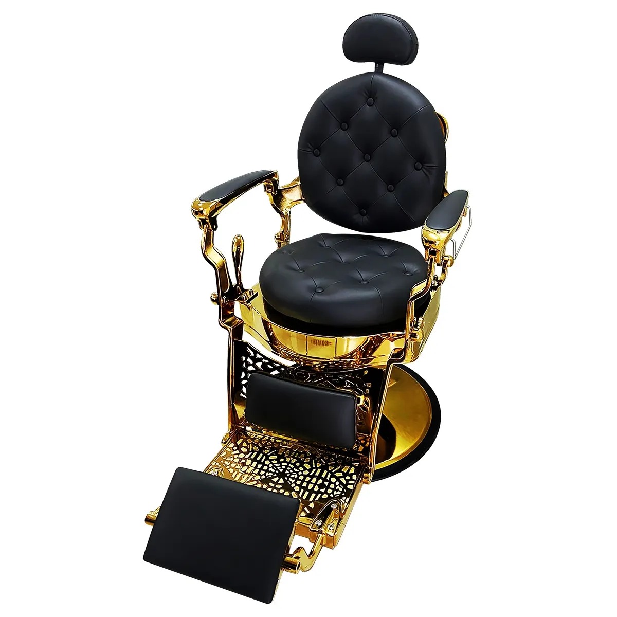 A Cadeira Lord Gold eleva o padrão de luxo e funcionalidade para seu estabelecimento. Com acabamento premium em detalhes dourados e estrutura robusta em aço, oferece durabilidade excepcional e suporte para até 180 kg. Design industrial vintage com assento extra-largo, braços em madeira e estofado de alta qualidade garantem conforto superior. Inclui sistema hidráulico preciso, reclino de 47° e apoio de pernas integrado para experiências personalizadas. Perfeita para salões que buscam sofisticação e desempenho.