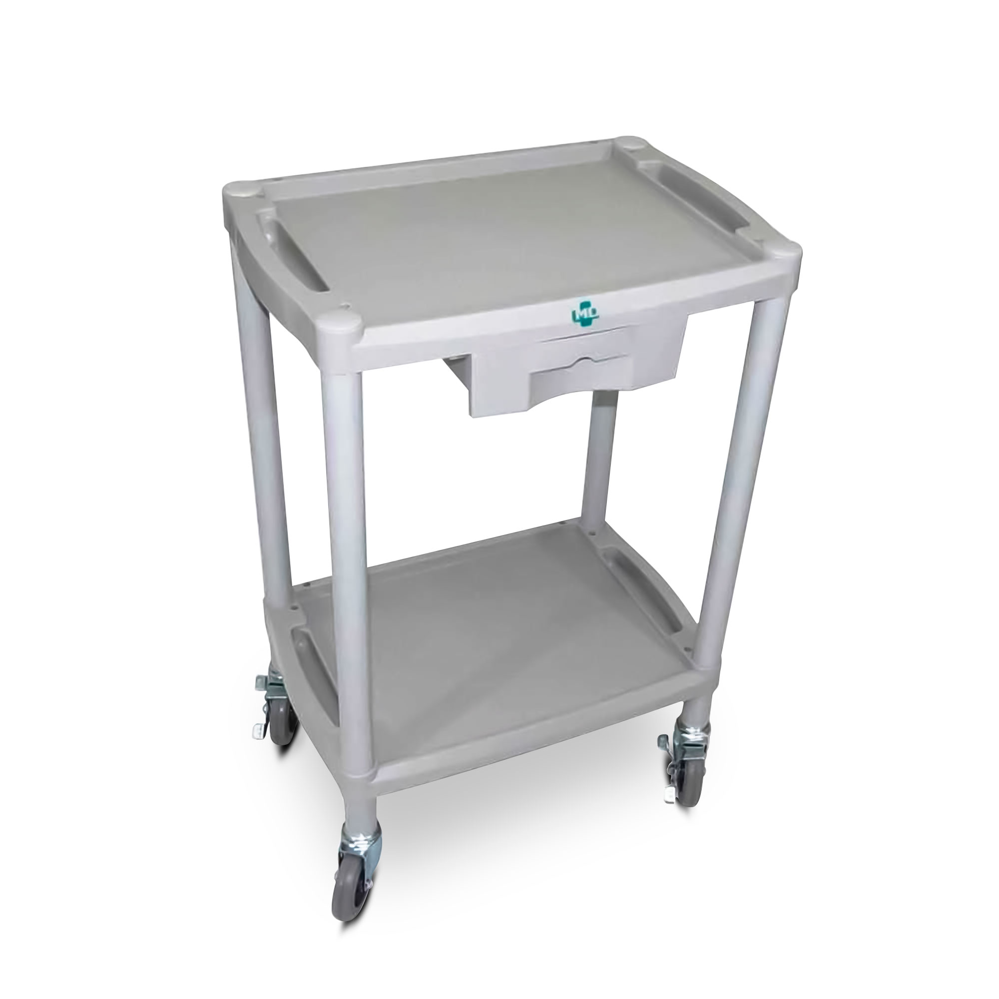 Carrinho leve e funcional para transporte seguro de eletrocardiógrafos, monitores, desfibriladores e equipamentos médicos. Desenvolvido em termoplástico resistente, é fácil de limpar e esterilizar. Inclui mesa auxiliar com gaveta, rodízios com freio e montagem simplificada, ideal para clínicas, hospitais e consultórios.