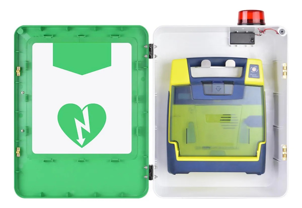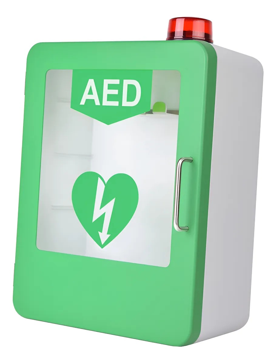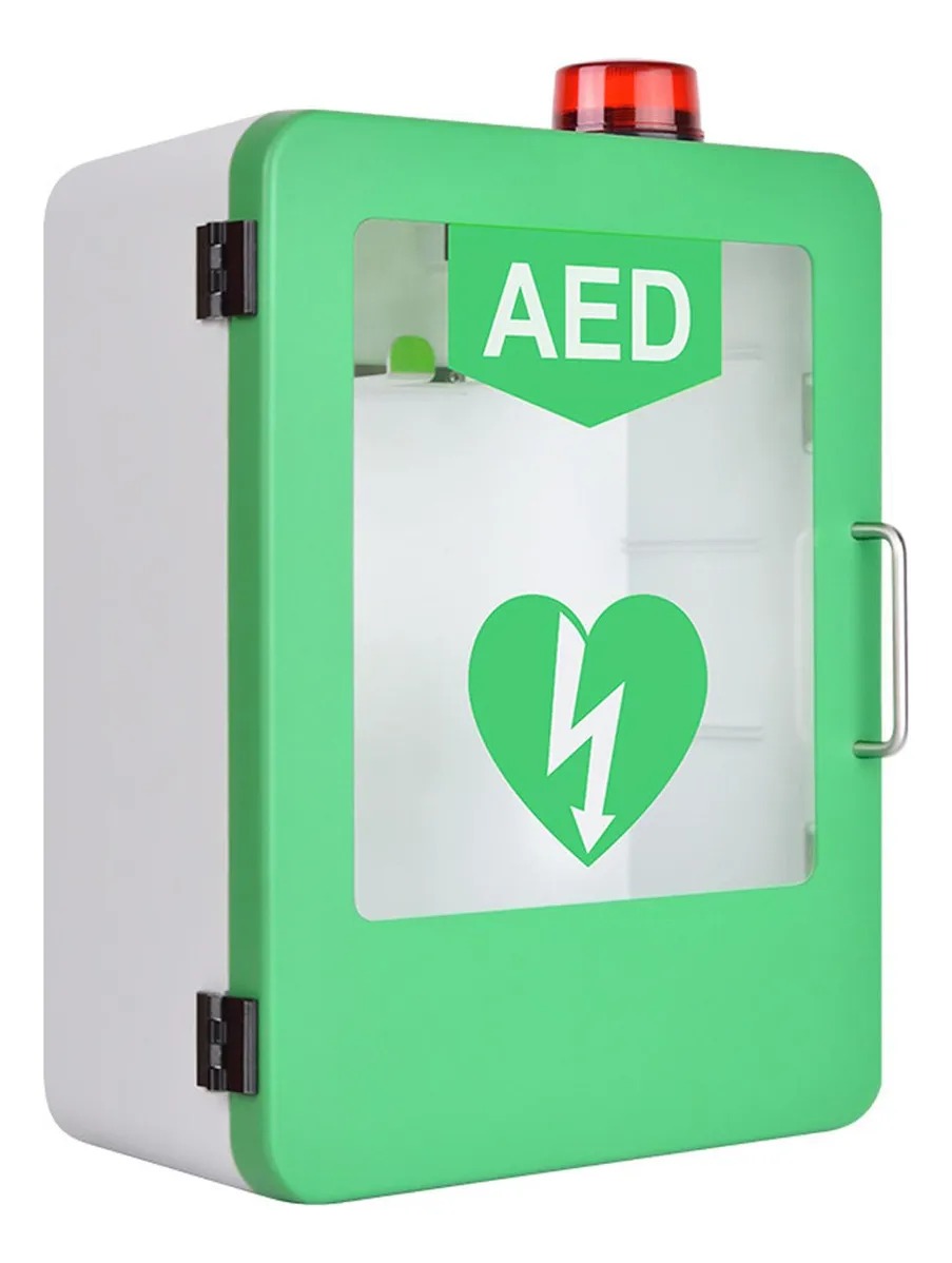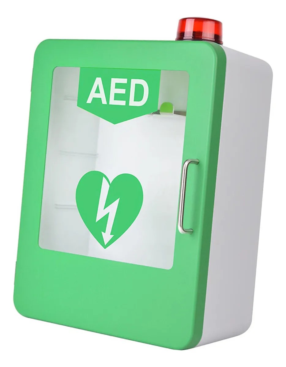 Armário de armazenamento suspenso para DEA (Desfibrilador Externo Automático), fabricado em aço resistente com sistema de alarme sonoro e visual. Possui porta de acionamento rápido com fechamento magnético, visor transparente para verificação do equipamento e iluminação LED integrada. Ideal para locais públicos, empresas, escolas e áreas de grande circulação, garantindo acesso rápido e seguro ao DEA em situações de emergência.