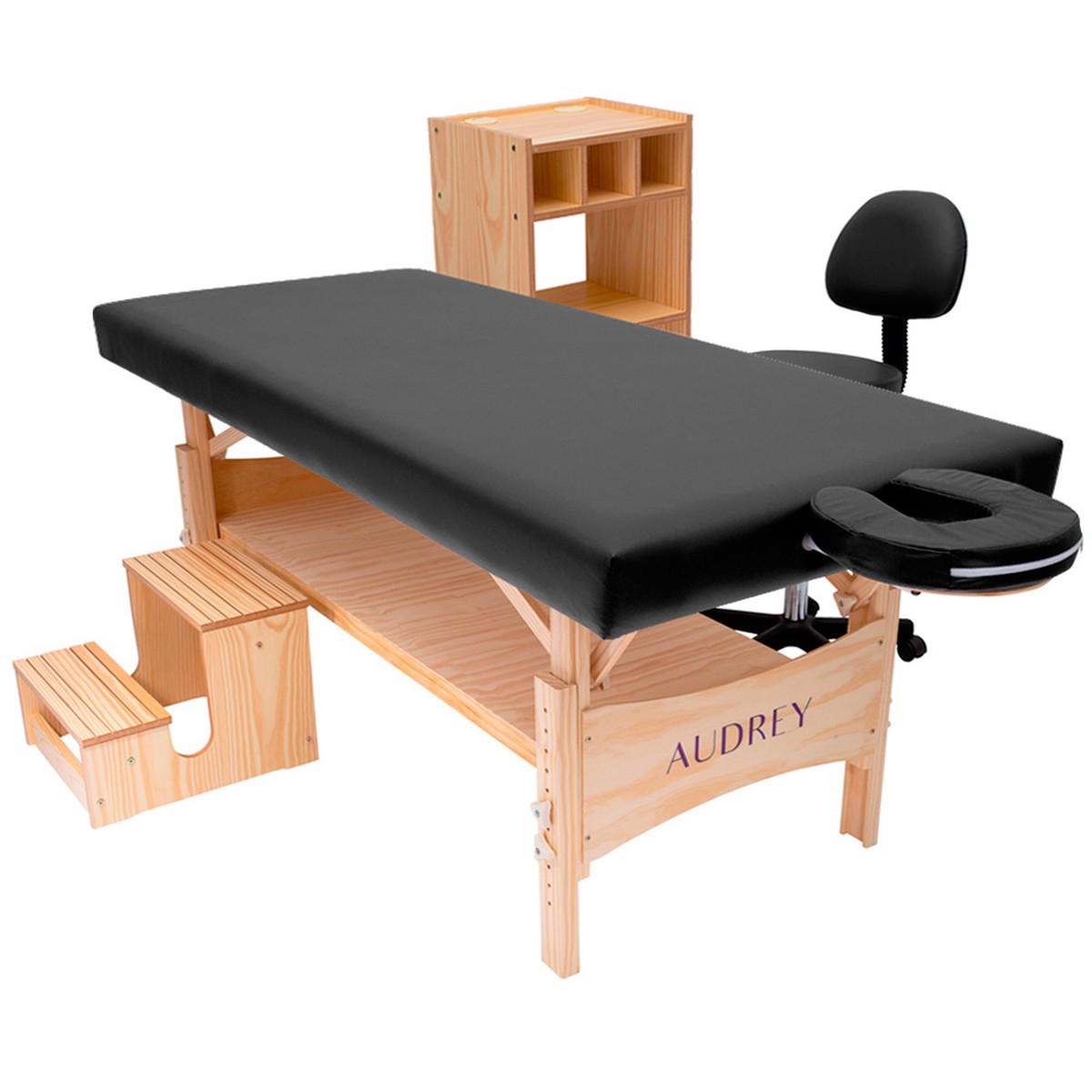 Kit Estética Completo Audrey com Maca Fixa Plus, Carrinho, Escadinha e Cadeira Mocho | Suporte 450kg