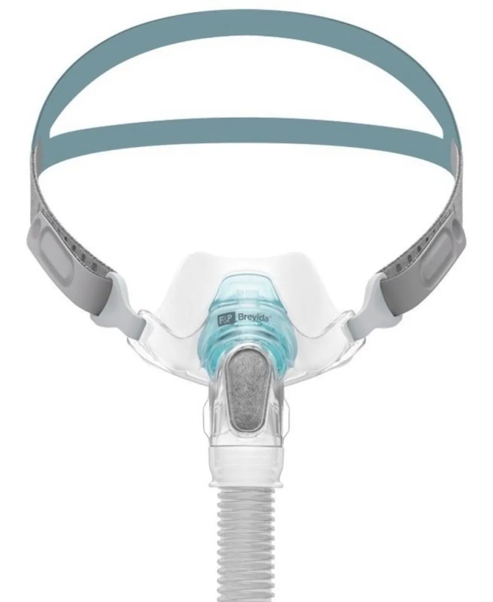 Máscara intranasal Brevida Fisher & Paykel com tecnologia AirPillow que infla suavemente para vedação estável e confortável. Inclui ambos os tamanhos de almofada (XS/S e M/L) na embalagem, tubo giratório 360° e fixador de quatro pontas ajustável. Design minimalista com pontos de conexão VisiBlue para montagem intuitiva e tampa com filtro difusor para redução de ruído. Ideal para terapia CPAP/BPAP com conforto superior durante o sono.